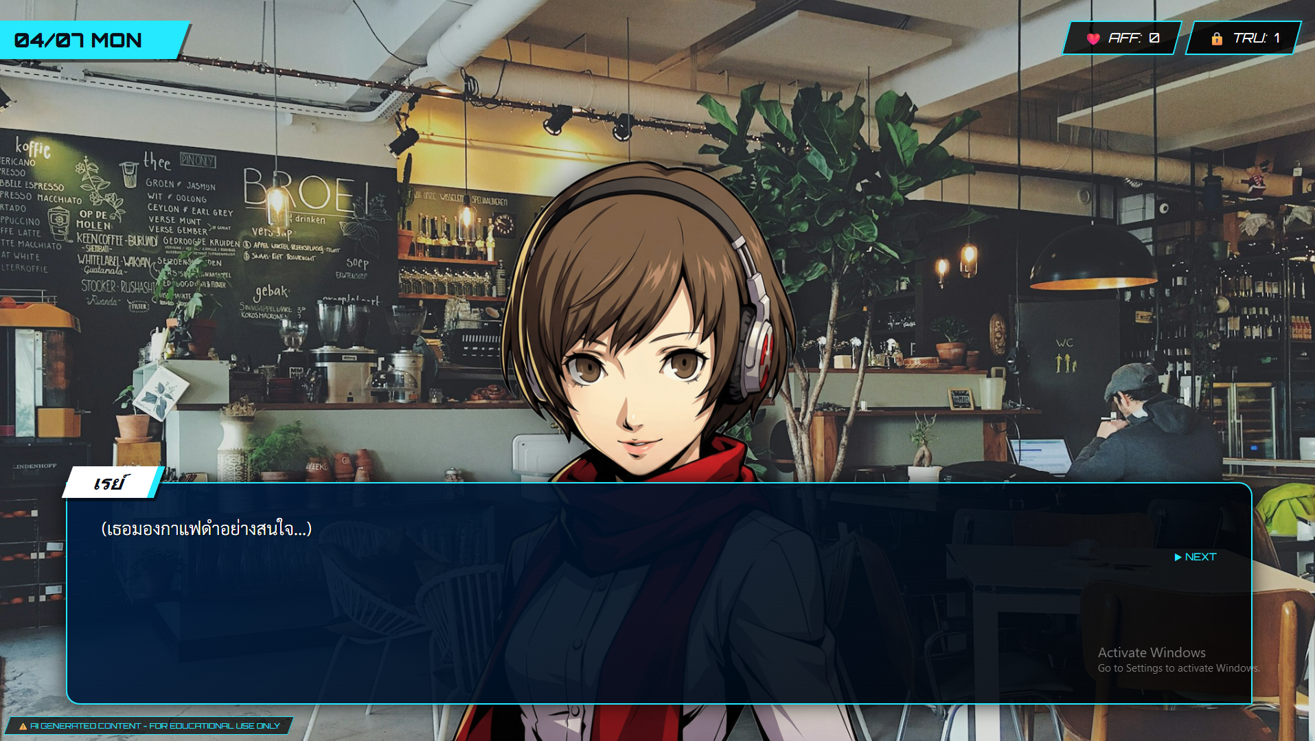 ❤️ [AFF] Affection (ความรัก): - ได้จากการตามใจเรย์ หรือทำตามที่ระบบ (Zoey) ต้องการ - ผลลัพธ์: นำไปสู่ "Good Ending" (โลกจอมปลอมที่สวยงาม) 🔒 [TRU] Trust (ความเชื่อใจ/ความจริง): - ได้จากการพูดความจริง หรือตั้งคำถามกับความผิดปกติของโลก - ผลลัพธ์: นำไปสู่ "True Ending" (การปลดปล่อยวิญญาณ) 👾 [ERR] Glitch (ความผิดปกติ): - ได้จากการเลือกตัวเลือกแปลกๆ เช่น "มองโค้ด", "แฮ็กระบบ" - ผลลัพธ์: หากเก็บครบ จะปลดล็อก "Secret Ending"